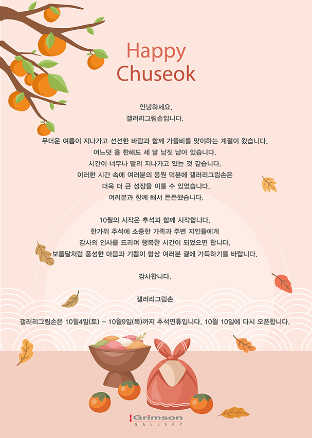 갤러리그림손은 10월4일(토) - 10월9일(목)까지 추석연휴입니다. 10월 10일에 다시 오픈합니다.